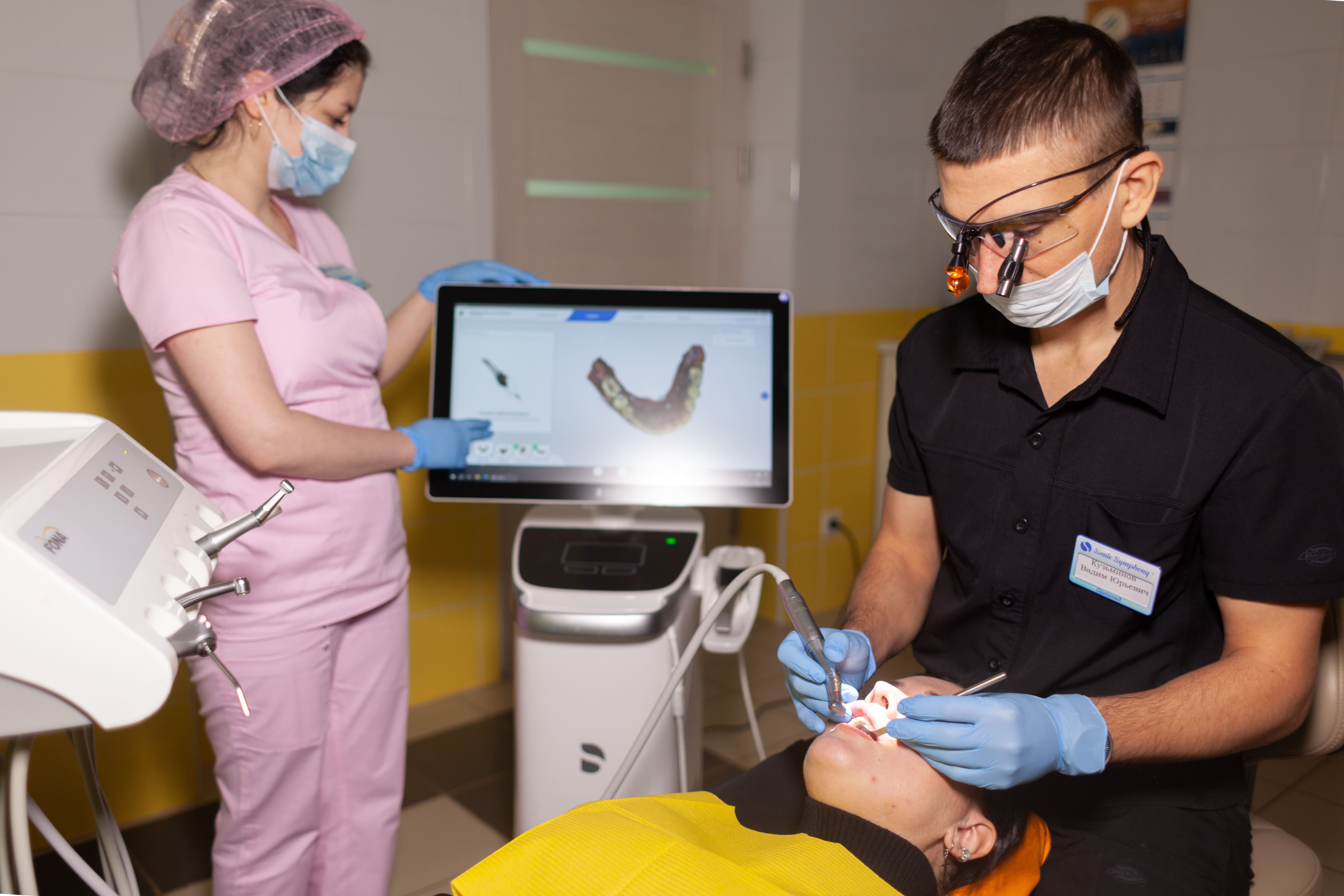 Врач терапевт-ортопед сети клиник Smile Symphony - Ульянов Иван Сергеевич ведет консультацию и прием пациента.