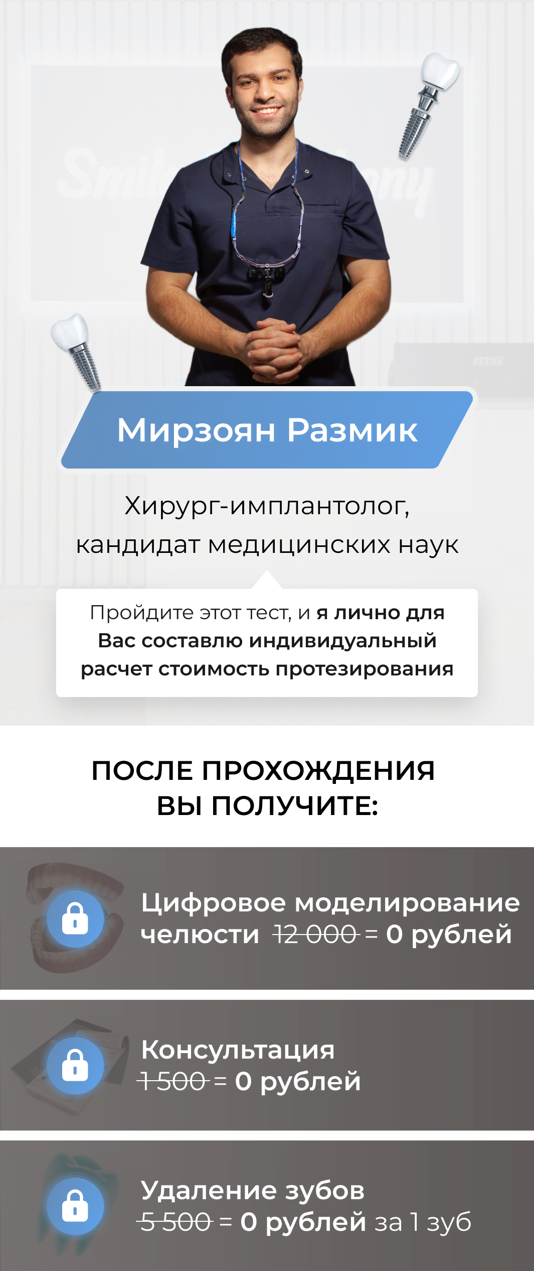 Кандидат медицинских наук и главный врач сети клиник Smile Symphony - Мирзоян Армен Рубенович ведет прием.